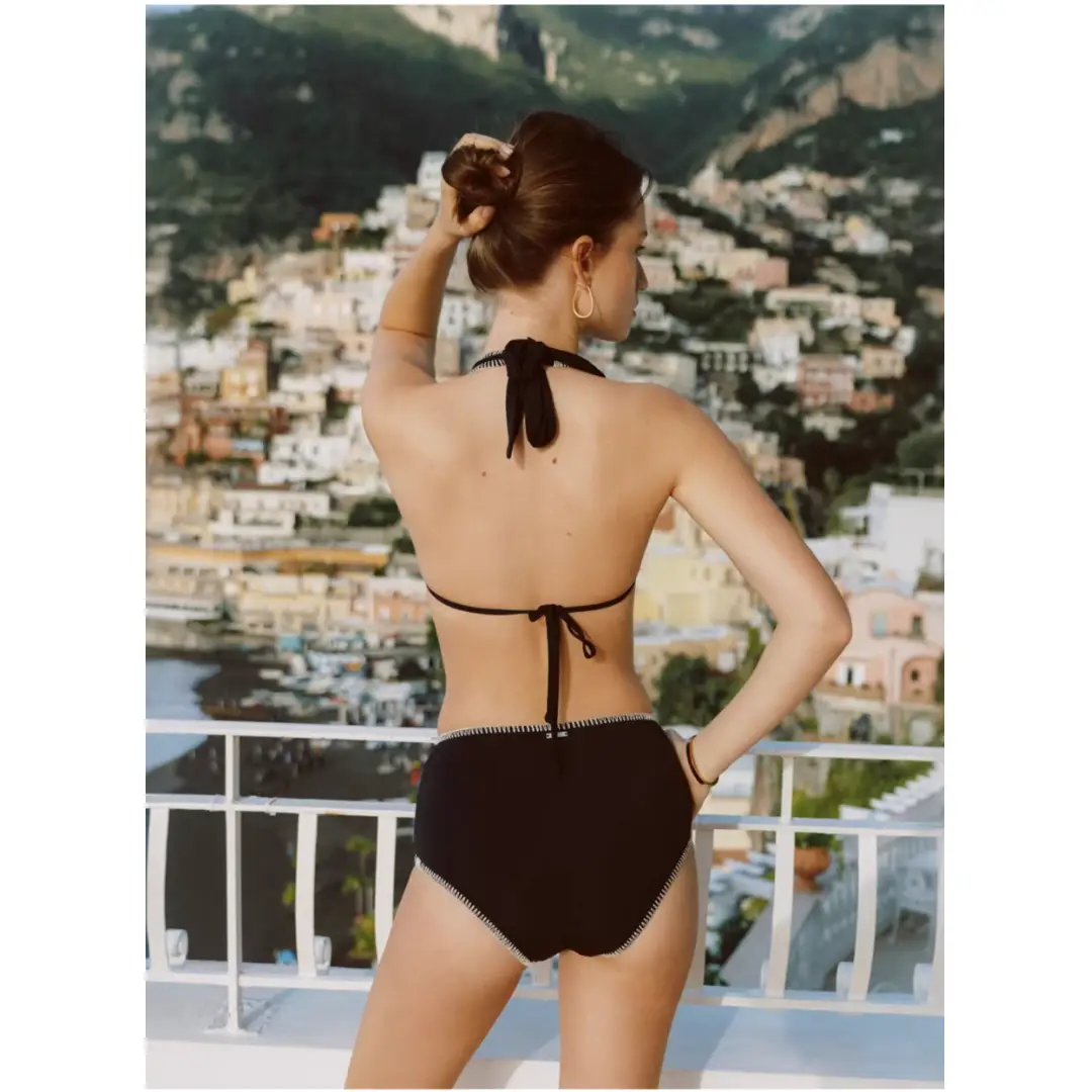 Designed with contrast stitching details, this piece brings a subtle retro vibe while staying effortlessly chic. Whether you're lounging poolside or exploring a coastal town, this bikini makes you feel both playful and elegant.