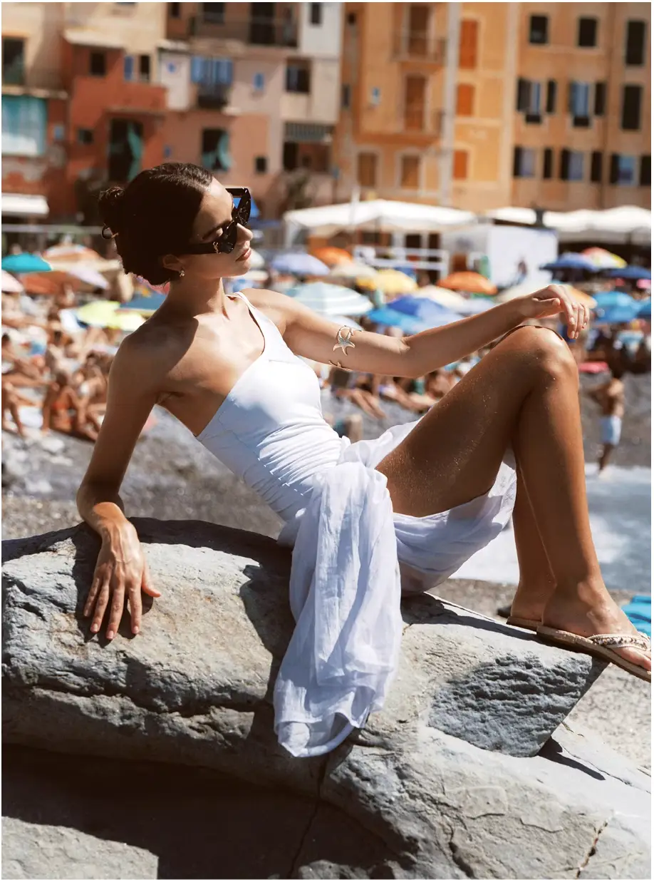 Available in timeless black and white, it’s a versatile piece that elevates your resort wardrobe.